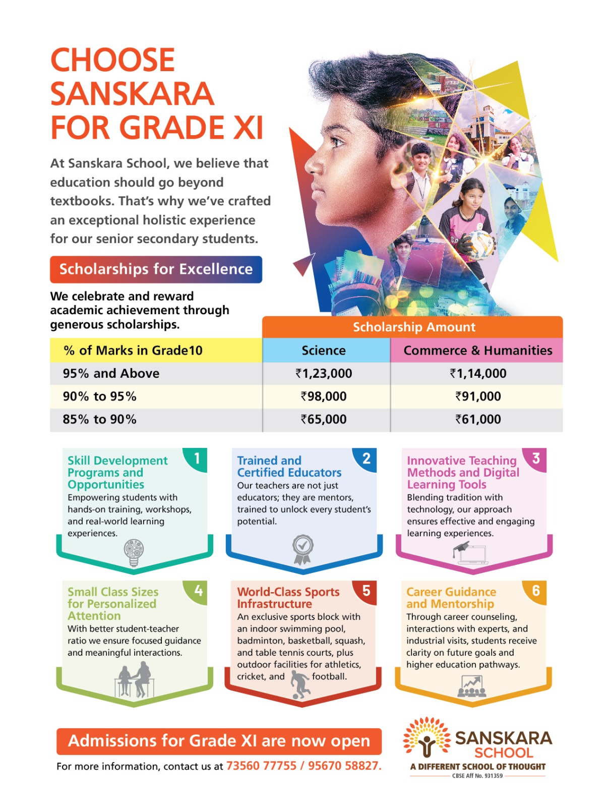 The philosophy of SANSKARA School revolves around stimulating young minds through positive transformation and an enriched learning experience. Thus building a secure, caring and invigorating environment that enhances individual potential. The school is steeped in tradition and yet has a modern outlook. It stands for Learning in Action. Overall the school offers ‘A balanced life’